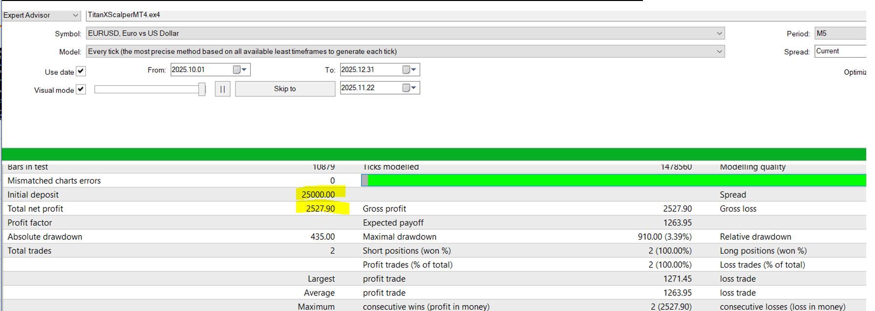 Back testing with Titanxpert Mt 5 EA.